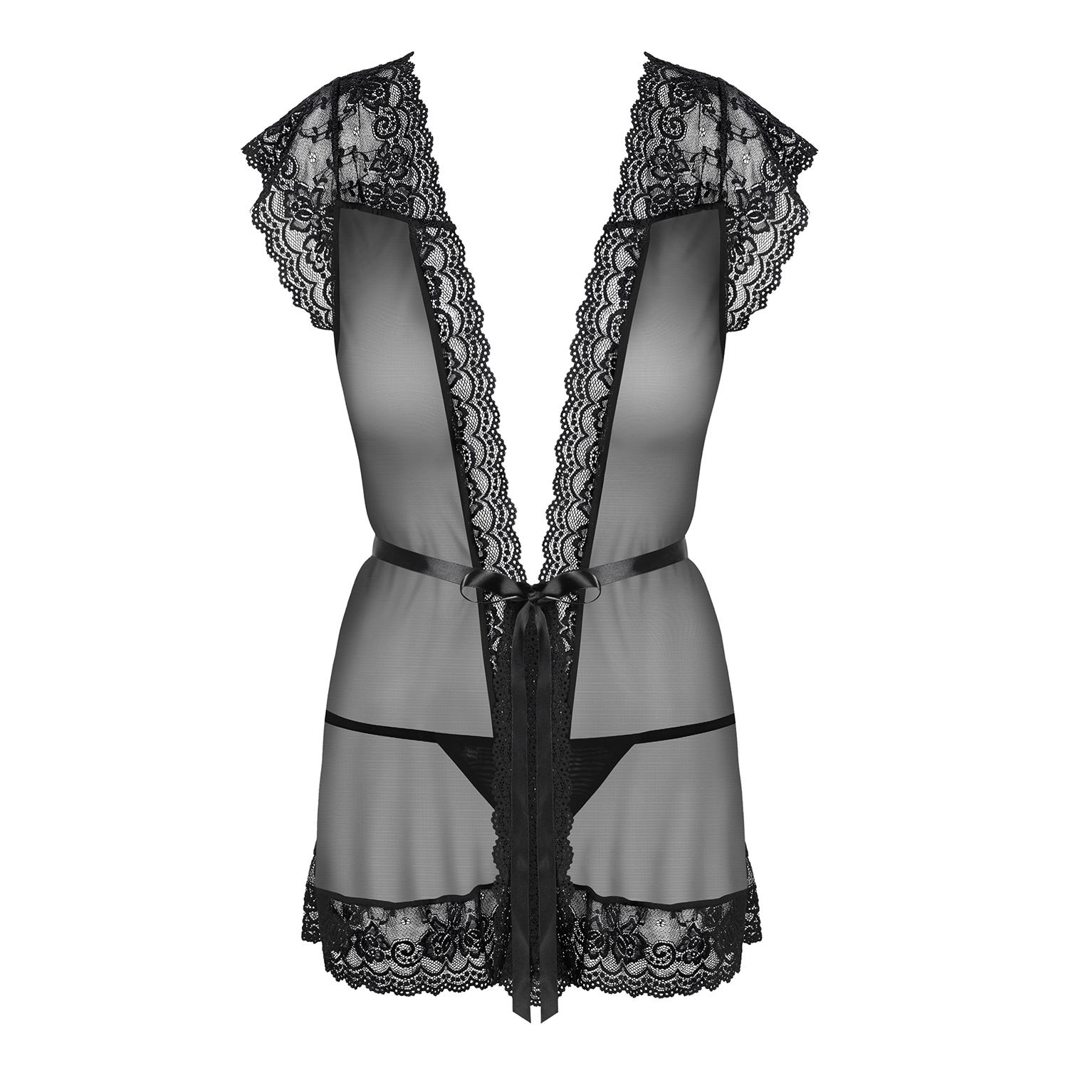Este robe é a combinação perfeita entre sensualidade e romantismo. Feito em suave e delicada renda bordada. Os folhos e a faixa em cetim são um bónus. Este produto é da marca OBSESSIVE, uma marca líder, repleta de erotismo e sensualidade com modelos únicos que enaltecem ainda mais o corpo das mulheres.